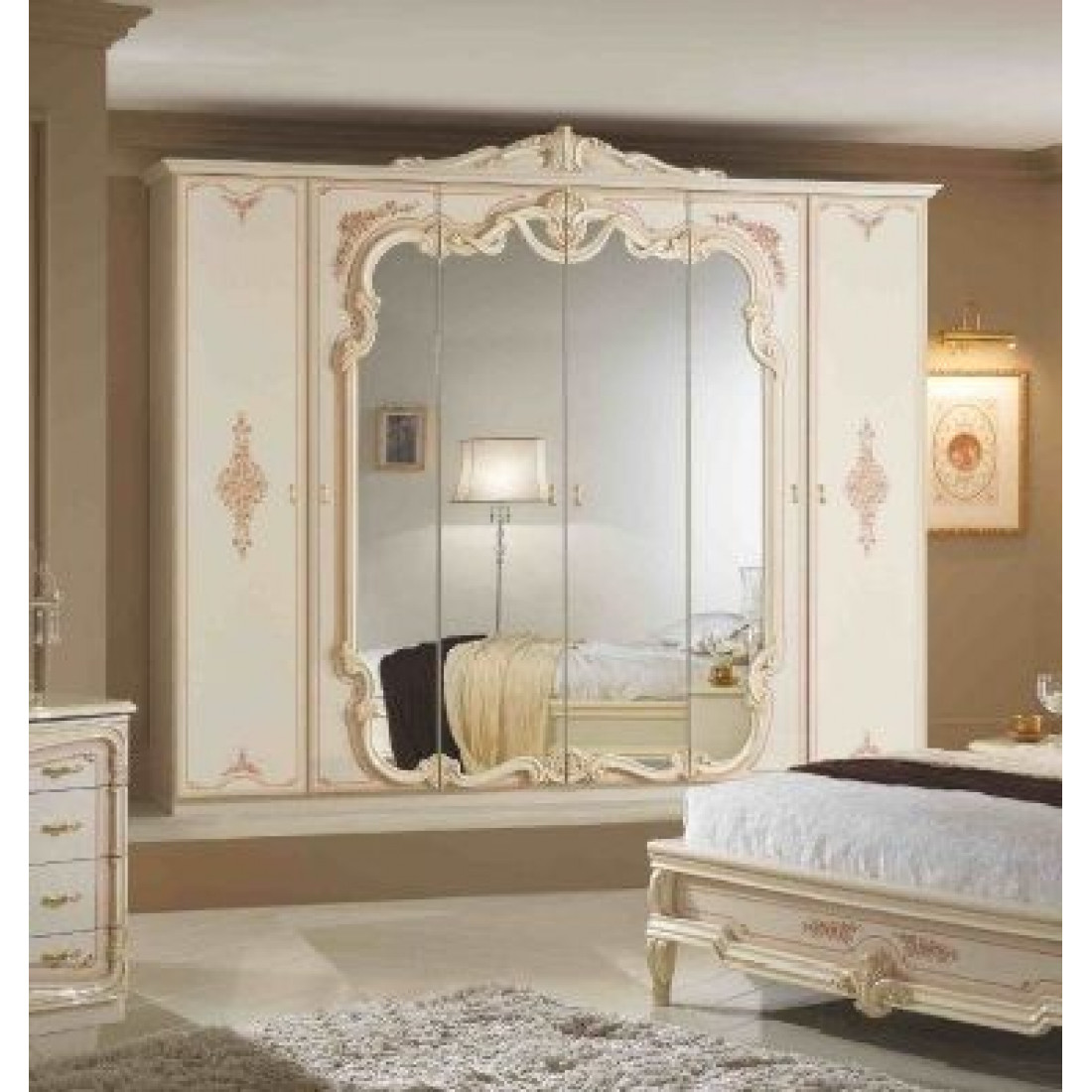 Шестистворчатый шкаф Диана (беж) от Российской фабрики «ДИА мебель» выполнен в бежевом глянцевом цвете, с зеркальным фасадом и деревянными рельефами. Такой вместительный и не габаритный шкаф, не займет много места даже в маленькой спальне. Ценители изысканный интерьеров по достоинству смогут оценить спальню "Диана".